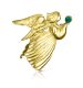 1" x 5/8" Gold plated brass Celtic guardian angel lapel pin with a butterfly clutch back. The guardian angel holds a green crystal gem in her hands and has delicate detailed etching on its wings.