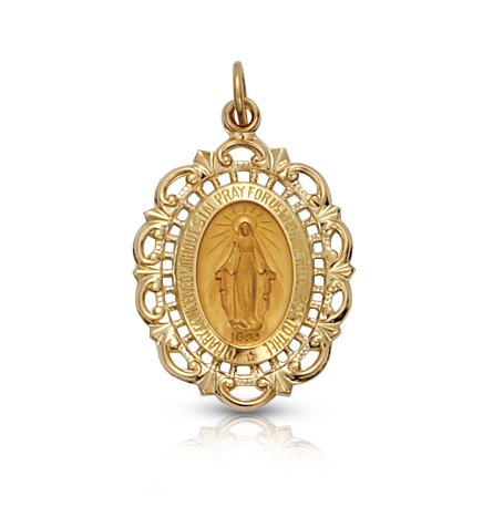 14K Gold Oval Filigree Miraculous Medal in a Polished Border Finish - 3/4" [1]