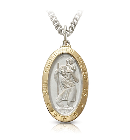 • 3/8" Engraved Round St. Christopher, Protector of Travelers Medal (includes loop on top)