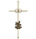 8" Brass 50th wedding anniversary wall cross. The design is a thin brass block wall cross with two interlocking rings in the center of the cross to symbolize commitment of a couple to live and grow in God's grace. Towards the bottom of the wall cross, is a brass casting of wedding bells with the "50" stamped on the bells. The top of the wall cross has a loop hole for hanging. Wall cross comes boxed.