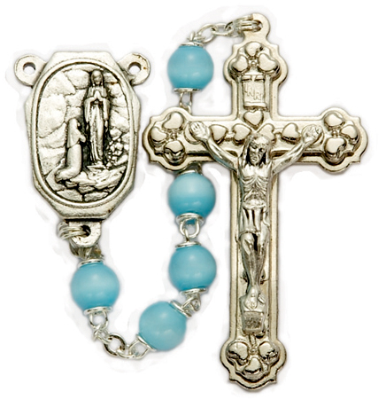 5mm Light Blue Beads & Our Lady of Lourdes Center Rosary