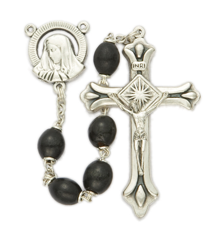 5mm Oval Black Wood Beads and Madonna Center Rosary