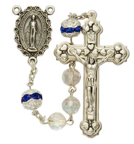 7mm Crystal Blue "Our Father" Beads & Miraculous Center Rosary