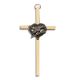 4" Polished brass wedding wall cross. The design is a thin polished brass block wall cross with an antiqued pewter pierced wreath heart design wrapped around the wording of "25th Anniversary" in the center of the cross to symbolize commitment of a couple to live and grow in God's grace. The top of the wall cross has a loop hole for hanging. Wall cross comes boxed.