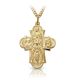 1" Satin finish brass with gold finish engraved Five Way medal on an 18" stainless steel gold plated chain. The medal pendant is shaped like a cross with budded ends. In the center is a raised and engraved dove -traditionally the symbol of the Holy Spirit- encircled by four symbols: St. Christopher, the Sacred Heart, St. Joseph, and the Miraculous Medal. The dove in the center of the medal makes it a Five Way medal. On the back of the medal there is an image of Our Lady of Mount Carmel on top and on the bottom is the Miraculous symbol. The Our Lady symbol on the back also makes this medal scapular. Includes an elegant deluxe velour jewelry box.