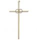 8" Brass wedding wall cross. The design is a thin brass block wall cross. The center of the cross has two interlocking rings to symbolize commitment of a couple to live and grow in God's grace. The top of the wall cross has a loop hole for hanging.