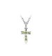 5/8" Polished finish silver plated flared cross necklace inlaid with August birthstone (Peridot) glass crystal stones on a 16" stainless steel rhodium plated chain.