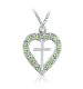Silver Plated Pierced Heart and Cross Necklace with Peridot Cubic Zirconia Stones - 13/16"