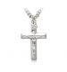 1" Polished finish sterling silver beveled crucifix necklace on an 18" stainless steel rhodium plated chain. The crucifix pendant features a beveled cross and a raised figure of Jesus Christ on it.