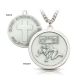 3/4" Satin finish sterling silver boy's wrestler medal on 20" stainless steel rhodium plated chain. The back of the medal features a cross and the inscription: "Christ Strengthens Me" on the top, "Philippians 4:13" on the bottom.