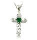 Sterling Silver Claddagh with Green Stone Center Cross Necklace - 1 1/16"