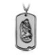1-1/8" Satin and antiqued finish sterling silver dog tag shaped St. Christopher medal on a 22" stainless steel rhodium plated chain. The dog features a raised figure of St. Christopher in the center, who is shown carrying a child on his shoulders. Behind the figure there is antiqued detailing. The back of the medal feature a satin finish and has the words, "St. Christopher Protect Us" in a circle shape in the center.