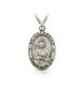 7/8" Satin and antiqued finish sterling silver St. Catherine oval medal on an 18" stainless steel rhodium plated chain. The pendant features a raised profile image of Saint Catherine on the front, who is carrying a book, a cross, and a bouquet of flowers. On the top and bottom of the pendant are the words, "Saint Catherine Pray For Us". The back of the medal is blank with a brushed finish but can be engraved with the message of your choice. Includes an elegant deluxe velour jewelry box.