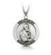 1" Satin and antiqued finish sterling silver St. Peter large round medal on a 24" stainless steel rhodium plated chain. The pendant features a raised image of Saint Peter on the front, who is shown holding the keys to heaven. On the top and bottom of the pendant are the words, "Saint Peter Pray For Us". The back of the medal is blank with a brushed finish but can be engraved with the message of your choice. Includes an elegant deluxe velour jewelry box.