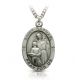 1" Satin and antiqued finish sterling silver St. Raphael oval medal on a 24" stainless steel rhodium plated chain. The pendant features a raised profile image of Saint Raphael on the front, who is shown as an angel with his hands on the shoulder of a person who holds a fish. On the top and bottom of the pendant are the words, "Saint Raphael Pray For Us". The back of the medal is blank with a brushed finish but can be engraved with the message of your choice.