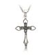 1 1/16" Antiqued sterling silver open and pointed ends cross necklace with marcasite stones on 18" stainless steel rhodium plated chain. The design includes genuine marcasite stones set in a decorative inner cross on a open and pointed ends cross pendant.
