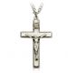 1 11/16" Sterling silver satin and antique finish oxidized crucifix necklace with Our Father (The Lord's Prayer) engraved on back on a 24" stainless steel rhodium plated chain. The crucifix pendant features a silver raised figure of Jesus Christ on the cross. Includes an elegant deluxe velour jewelry box.