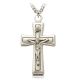 1 1/2" Polished and satin finish sterling silver polished edges crucifix necklace on a 24" stainless steel rhodium plated chain. The crucifix pendant features a satin finished raised figure of Jesus Christ on the cross as well as a satin finish inner cross. The border of the pendant or the outer cross has a polished finish.