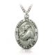 1" Satin and antiqued finish sterling silver St. Anthony oval medal on a 24" stainless steel rhodium plated chain. The pendant features a raised profile image of Saint Anthony on the front, who is shown holding the divine infant. On the top and bottom of the pendant are the words, "Saint Anthony Pray For Us". The back of the medal is blank with a brushed finish but can be engraved with the message of your choice.