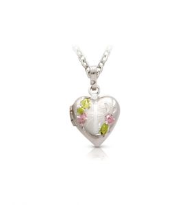 • 3/4" Two-Tone Filigree Heart Necklace with Gold Plated Descending Dove Design
